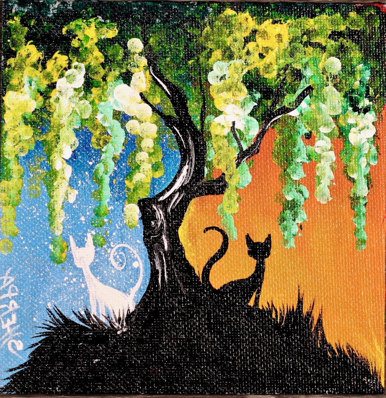 The Art Sherpa Day and Night Cats painting 5 x 5 canvas board. Free gift with purchase (valued at over $200).