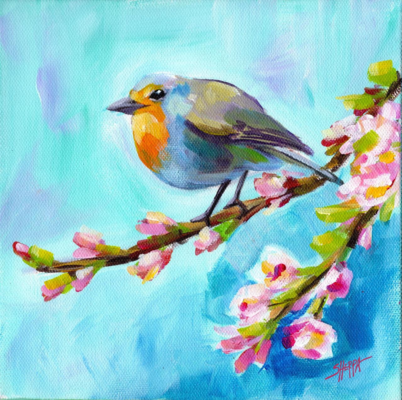 Sherpa Stash Sale - Beautiful Bird on a Branch Painting