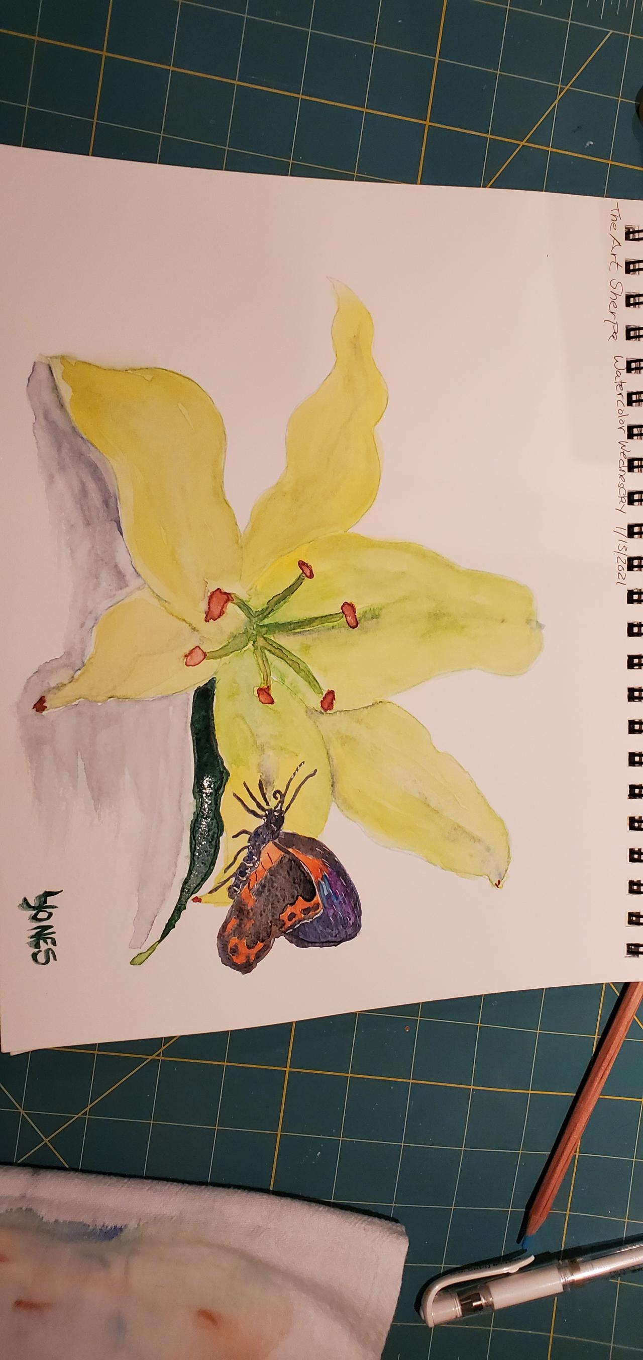 How to Watercolor White Lily and Butterfly
