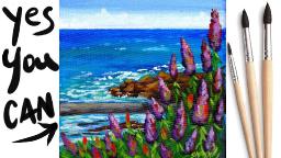 PURPLE OCEAN FLOWERS ALONG THE SEASIDE VIEW Easy social paint night in you can enjoy from the comfort of your own home keeping it fun. This is the first Daily Painting course for Beginners who want a real acrylic painting step by step tutorial about how to paint better water in landscapes . Everything is 100% real time, multi Camera angles and fully explained so its easy to understand. YOU CAN PAINT THIS !! All Art lessons are brought to you by The Art Sherpa You can join our Live stream chats daily to connect with other painters just like you.