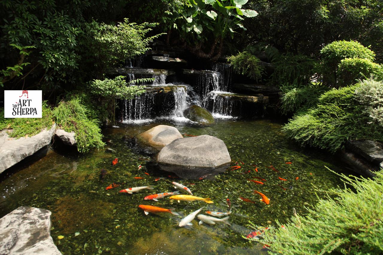 • koi and falls
