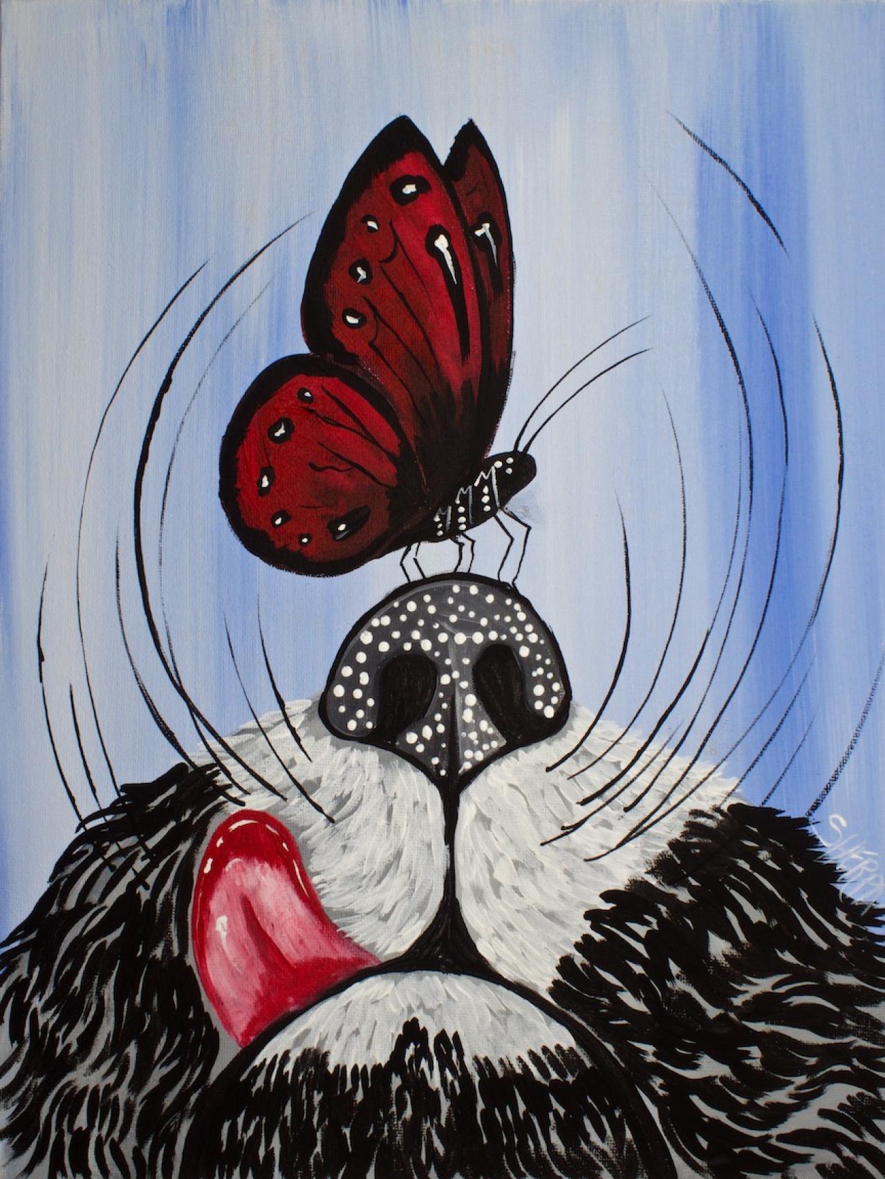 • Butterfly in Cats nose easy paintings for beginners