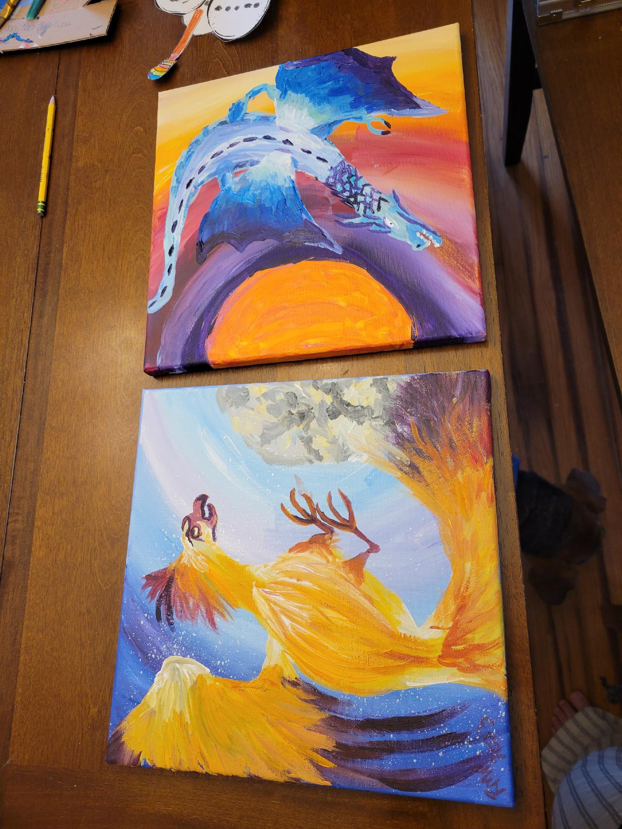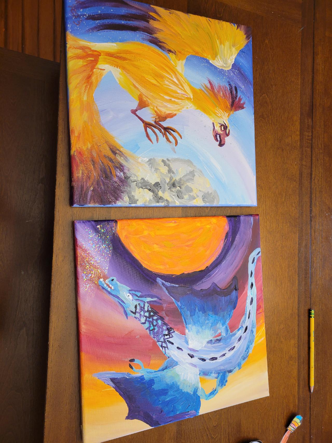 I painted the Phoenix from one of your videos and it inspired me to painted a snoq dragon to go with it.