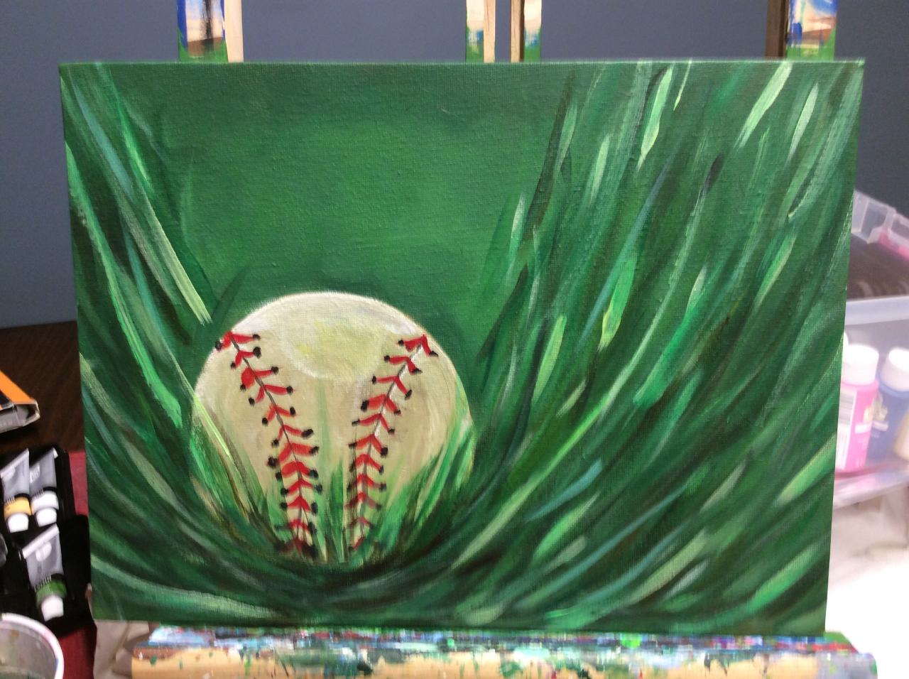 EASY Baseball in Grass Beginners learn to paint full acrylic art lesson. I would show yo how to make a Soft blended Background with Stencil brushes and easy ...