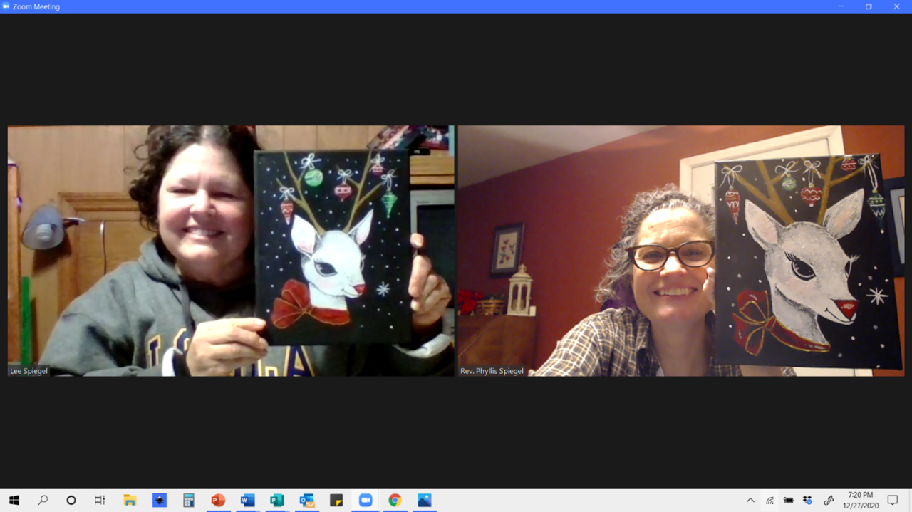 This is the second painting my sister and I have done with you by using Share Screen on Zoom. Both of us live alone and so decided to not be lonely on Thanksgiving night and Christmas (well the day after, as I am a priest). We did not realize this was a traceable class and so decided to freehand. We had a ball and are very excited to both have paintings that look like deer! The one problem we ran into was not getting good coverage over the black. Our colors just kept fading in. We were thinking we should have painted everything white before adding color. Do you think it was a problem with our paint (Artist's Loft Academic 1) or the brushes (Level 2)?