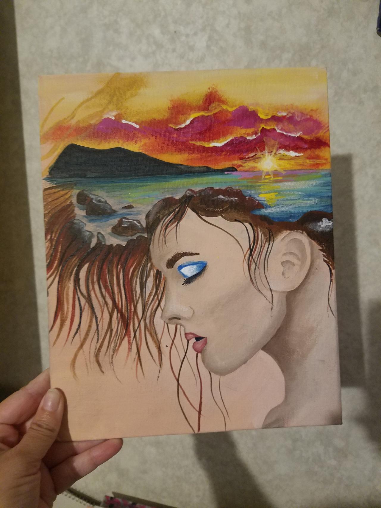 How to paint a face in acrylic paint Beginners learn to paint full acrylic art lesson of a profile Fantasy FACE of a girl Dreaming of s sunset in Acrylic.