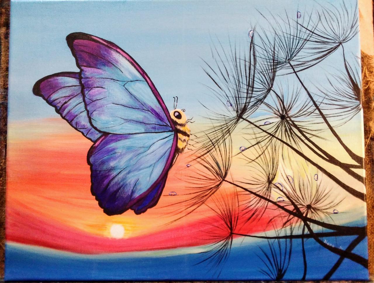 Healing Easy butterfly sunrise and Dandylion Acrylic painting tutorial | TheArtSherpa [Video URL]