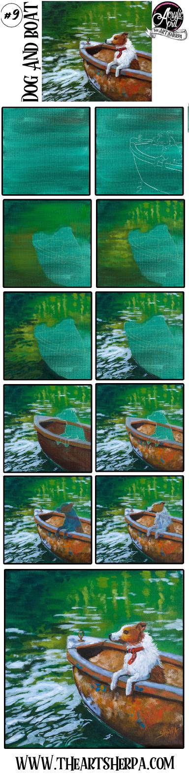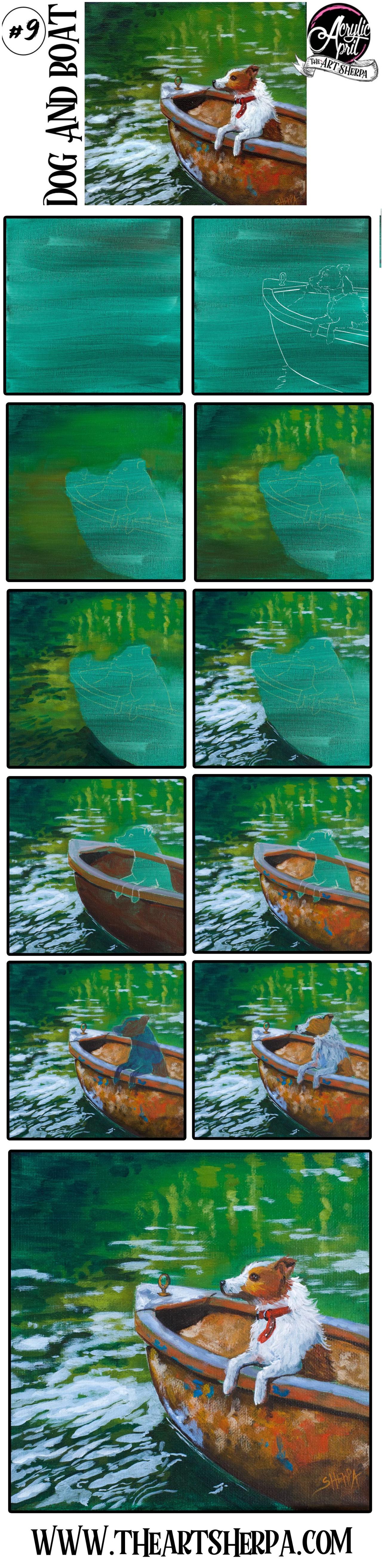 Easy paint night at home of a Sweet Dog in a Boat Daily Painting Beginner Acrylic painting step by step lesson for new artists Fully guided YOU CAN PAINT THIS with The Art Sherpa 🎨 👩🎤 Hoots : 🦉🦉