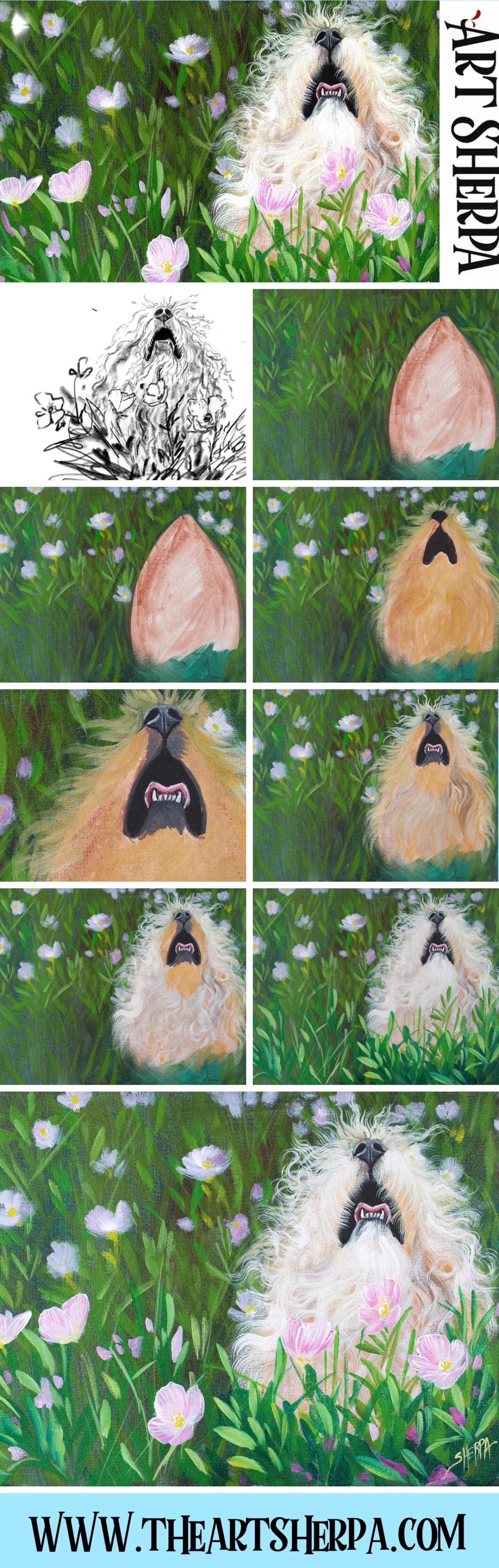 FLUFFY DOG IN FLOWERS Easy social paint night in you can enjoy from the comfort of your own home keeping it fun. This is a Painting course for Beginners who want a real acrylic painting step by step tutorial about how to paint . Everything is 100% real time, multi Camera angles and fully explained so its easy to understand. YOU CAN PAINT THIS !! All Art lessons are brought to you by The Art Sherpa You can join our Live stream chats daily to connect with other painters just like you. Difficulty meter level in Hoots :