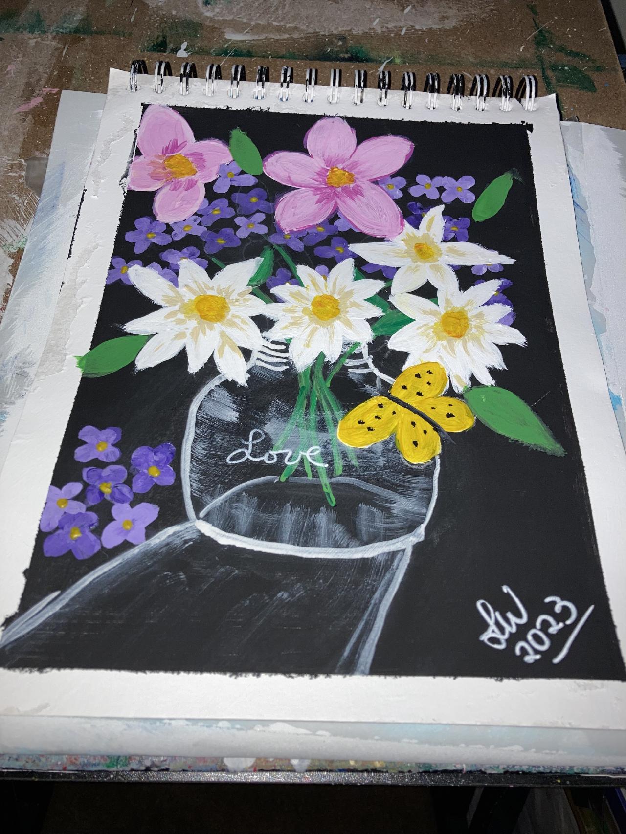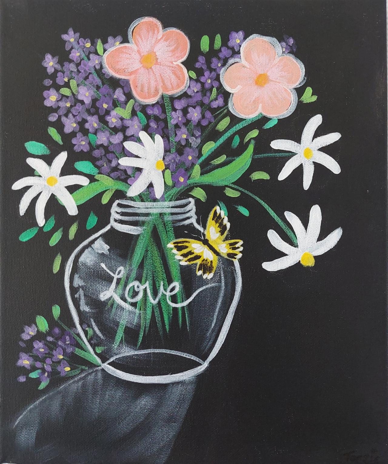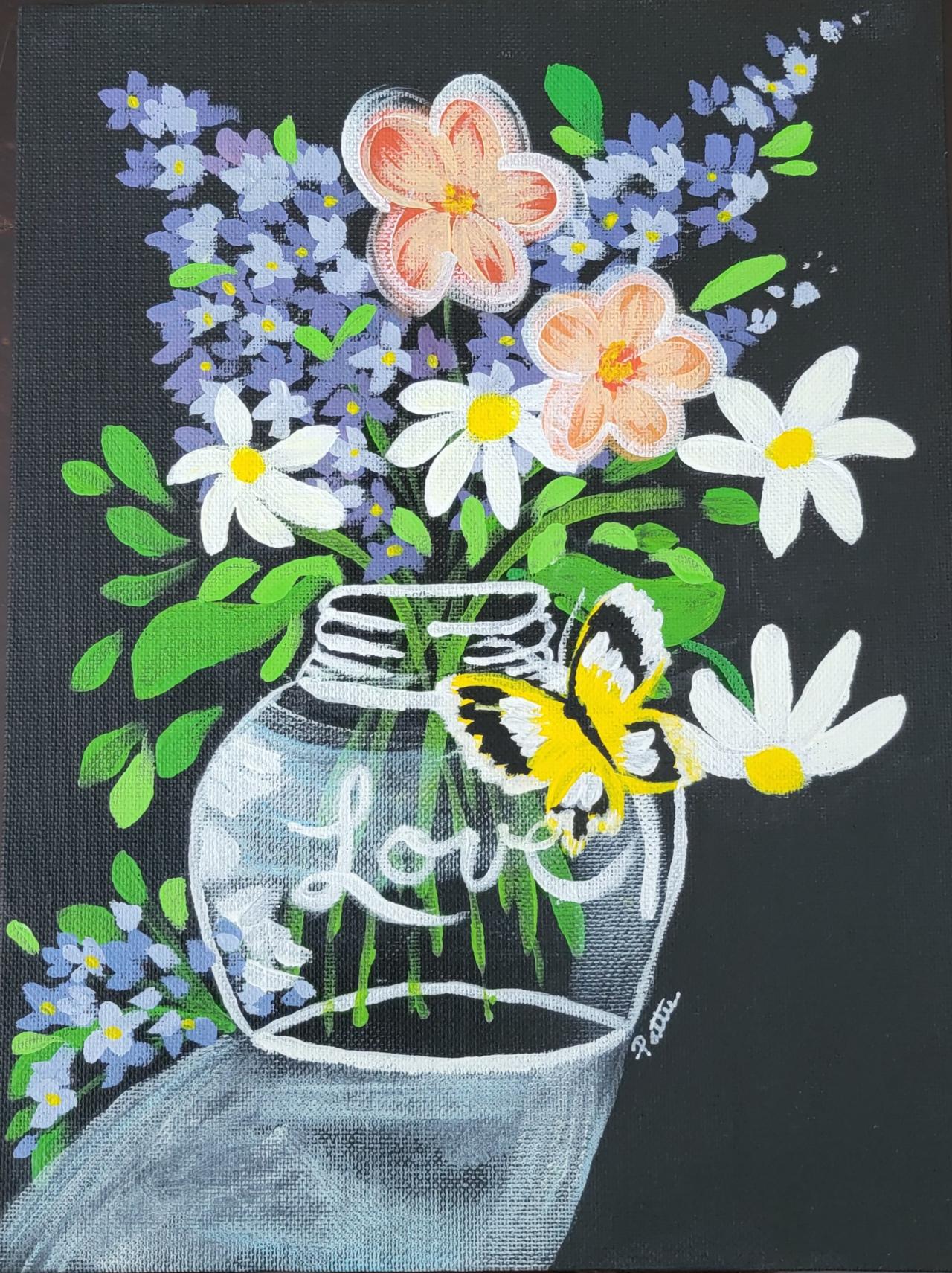 Mason JAR Flowers with yellow butterfly EASY Beginner Acrylic Painting STEP BY STEP Course is brought to you by The Art Sherpa You can join our Live stream chats daily to connect with other painters just like you. This class is just primary colors and a 9x12 surface