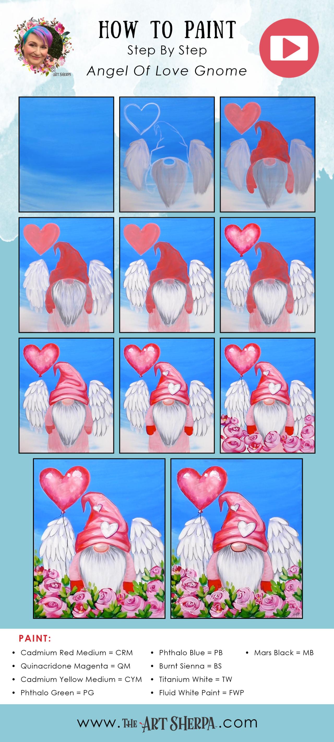 Angel of Love Gnome Beginners Learn to paint Acrylic Tutorial Step by Step . Easy social paint night in you can enjoy from the comfort of your own home keeping it fun. This is a Painting course for Beginners who want a real acrylic painting step by step tutorial about how to paint . Everything is 100% real time, multi Camera angles and fully explained so its easy to understand. YOU CAN PAINT THIS !! All Art lessons are brought to you by The Art Sherpa 🎨 👩🎤 You can join our Live stream chats daily to connect with other painters just like you. tas220205