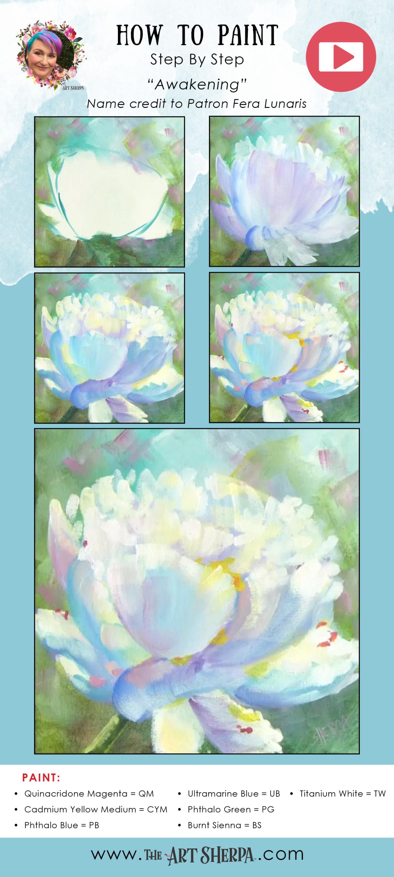 ✏️ Mini book: https://theartsherpa.com/theartsherpacommunity/file/449/white-peony-acrylic-april-2022-day-2