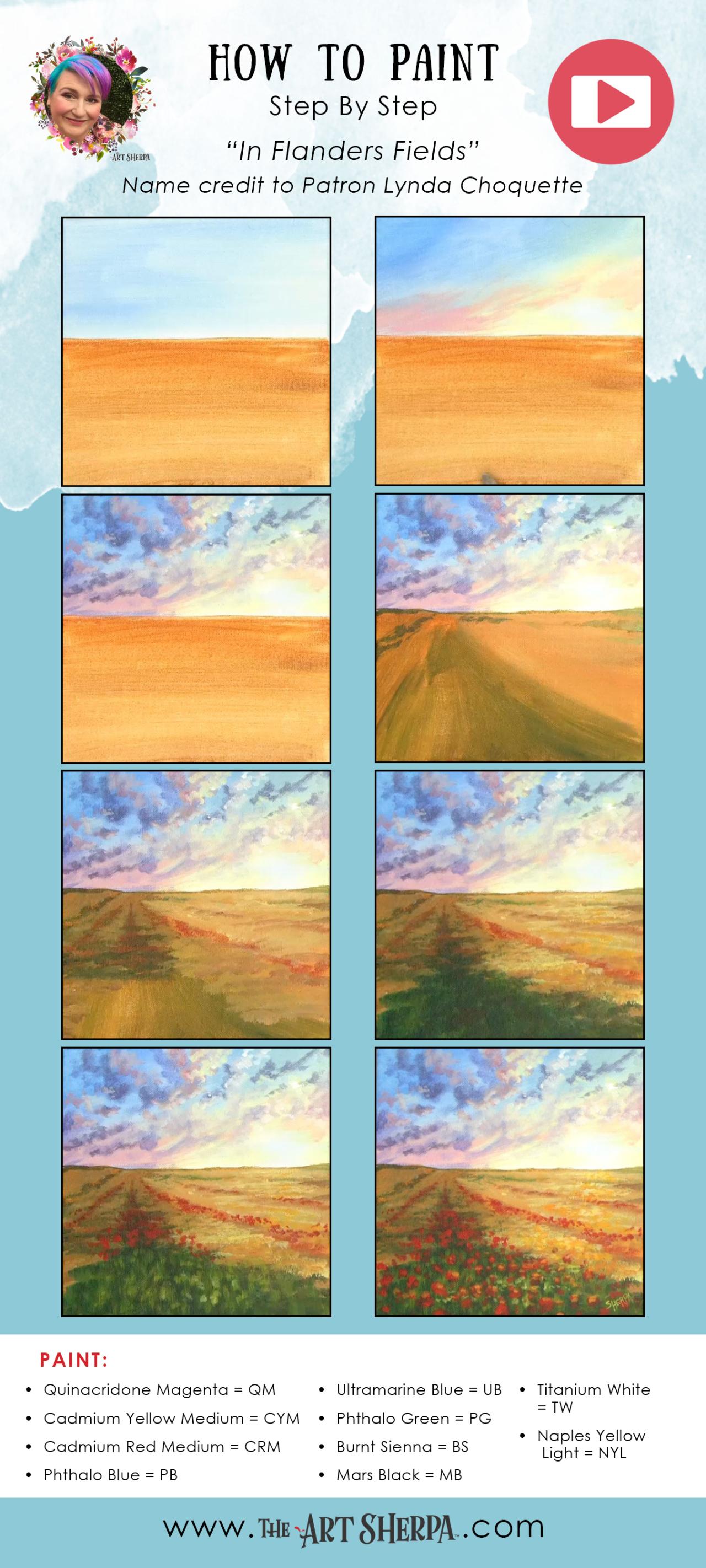 WILD POPPIES IN FIELD COLORFUL CLOUDS 🌺 Easy Acrylic Tutorial Step by Step Day 4 #AcrylicApril 🌺🌸🌼 BLOOM How to paint Flowers by The Art Sherpa This is the first Daily Painting course for Beginners who want a real acrylic painting step by step tutorial about how to paint better Flowers. Everything is 100% real time, multi Camera angles and fully explained so it's easy to understand. YOU CAN PAINT THIS !! All Art lessons are brought to you by The Art Sherpa 🎨 👩🎤 You can join our Live stream chats daily to connect with other painters just like you.