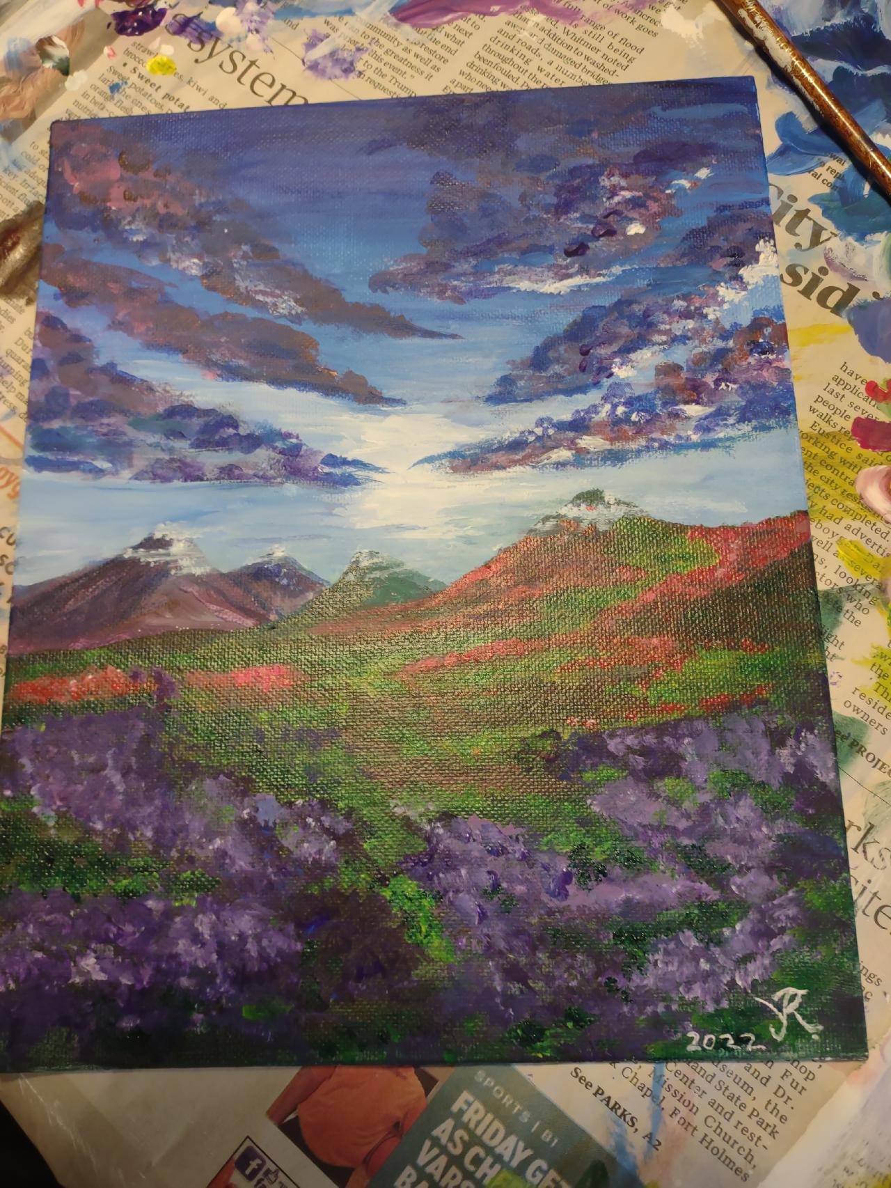 Purple Flowers Mountain Sunset 🌺🌸🌼 Easy Acrylic Tutorial Step by Step Day 8 #AcrylicApril 🌺🌸🌼 BLOOM How to paint Flowers by The Art Sherpa This is the first Daily Painting course for Beginners who want a real acrylic painting step by step tutorial about how to paint better Flowers. Everything is 100% real time, multi Camera angles and fully explained so it's easy to understand. YOU CAN PAINT THIS !! All Art lessons are brought to you by The Art Sherpa 🎨 👩🎤 You can join our Live stream chats daily to connect with other painters just like you.