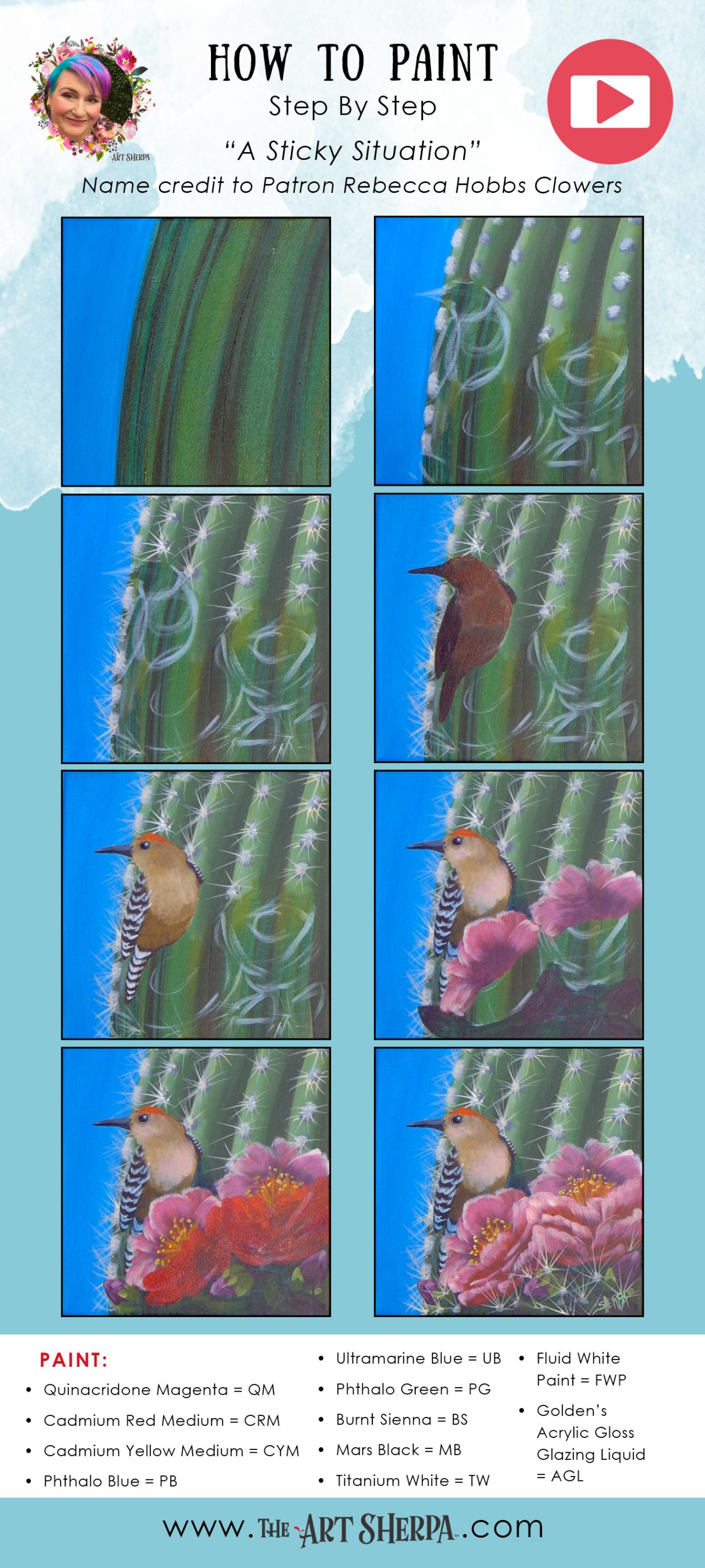 » Cactus Flower And Bird Easy Acrylic Tutorial Step by Step Day 14 #AcrylicApril2022