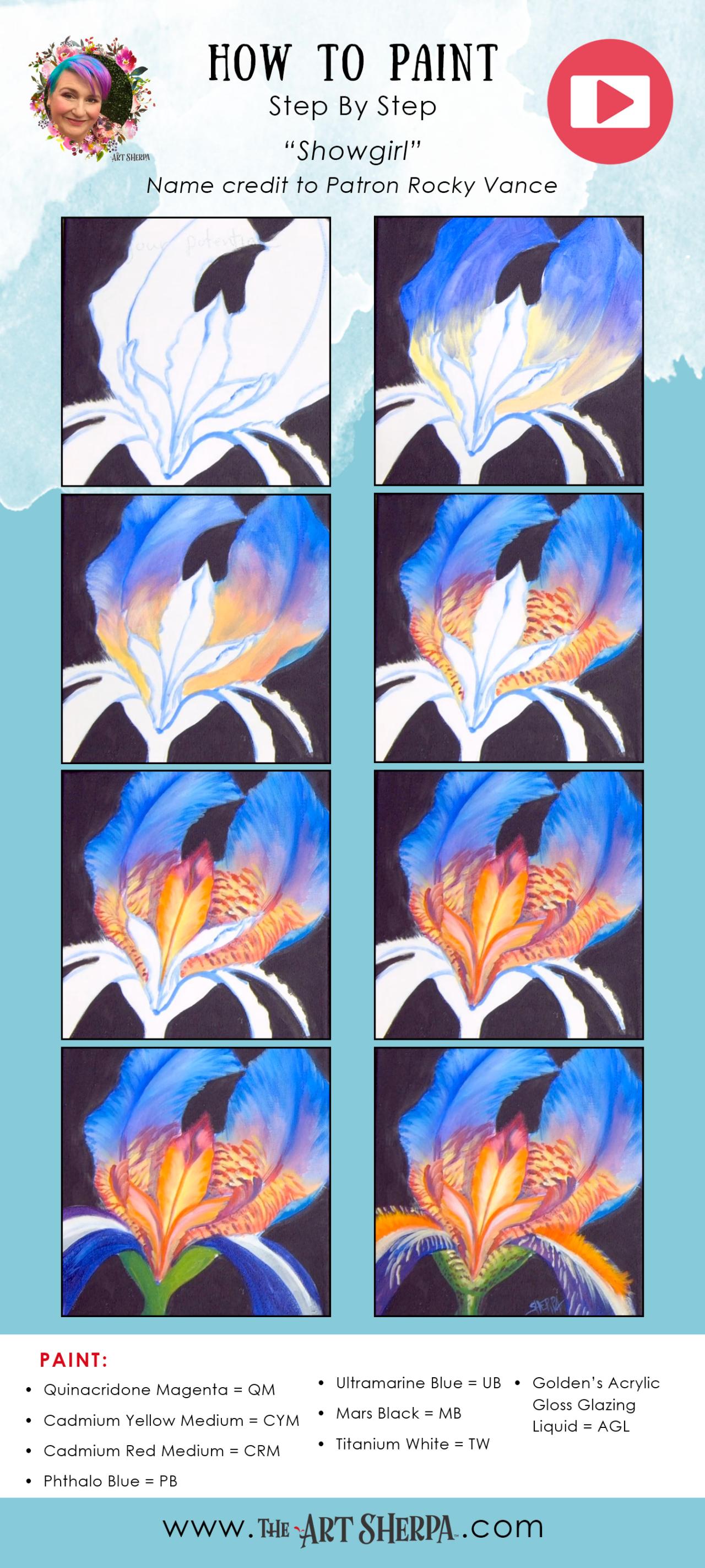» Close up Iris flower Easy Acrylic Tutorial Step by Step Day 15 #AcrylicApril2022