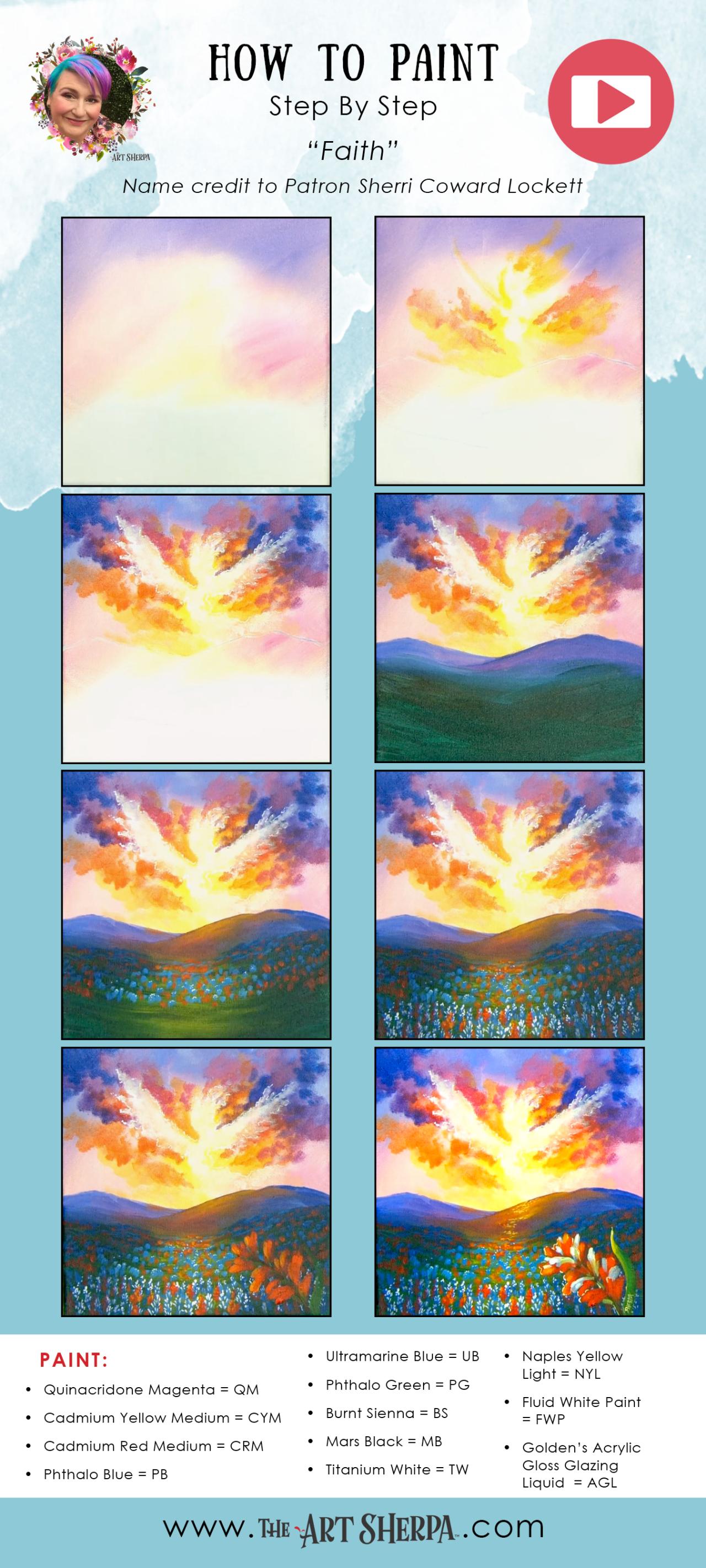 Angel in the Clouds in the sunset shining over a valley of bluebonnets and wildflowers 🌺🌸🌼 Easy Acrylic Tutorial Step by Step Day 20 #AcrylicApril 🌺🌸🌼 BLOOM How to paint Flowers by The Art Sherpa This is the first Daily Painting course for Beginners who want a real acrylic painting step by step tutorial about how to paint better Flowers. Everything is 100% real time, multi Camera angles and fully explained so it's easy to understand. YOU CAN PAINT THIS !! All Art lessons are brought to you by The Art Sherpa 🎨 👩🎤 You can join our Live stream chats daily to connect with other painters just like you.
