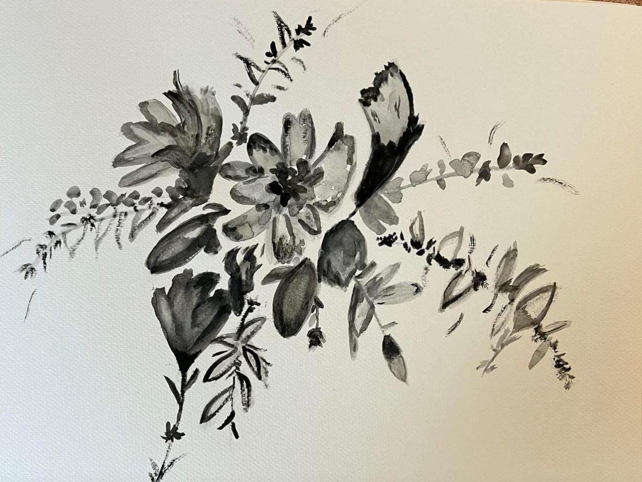 VERY Easy flowers black and white How to Paint Watercolor Step by step Any skill level is welcome everything will be explained step-by-step so that beginners can enjoy painting with us. Let’s relax and chill out Fully guided YOU CAN PAINT THIS today with The Art Sherpa