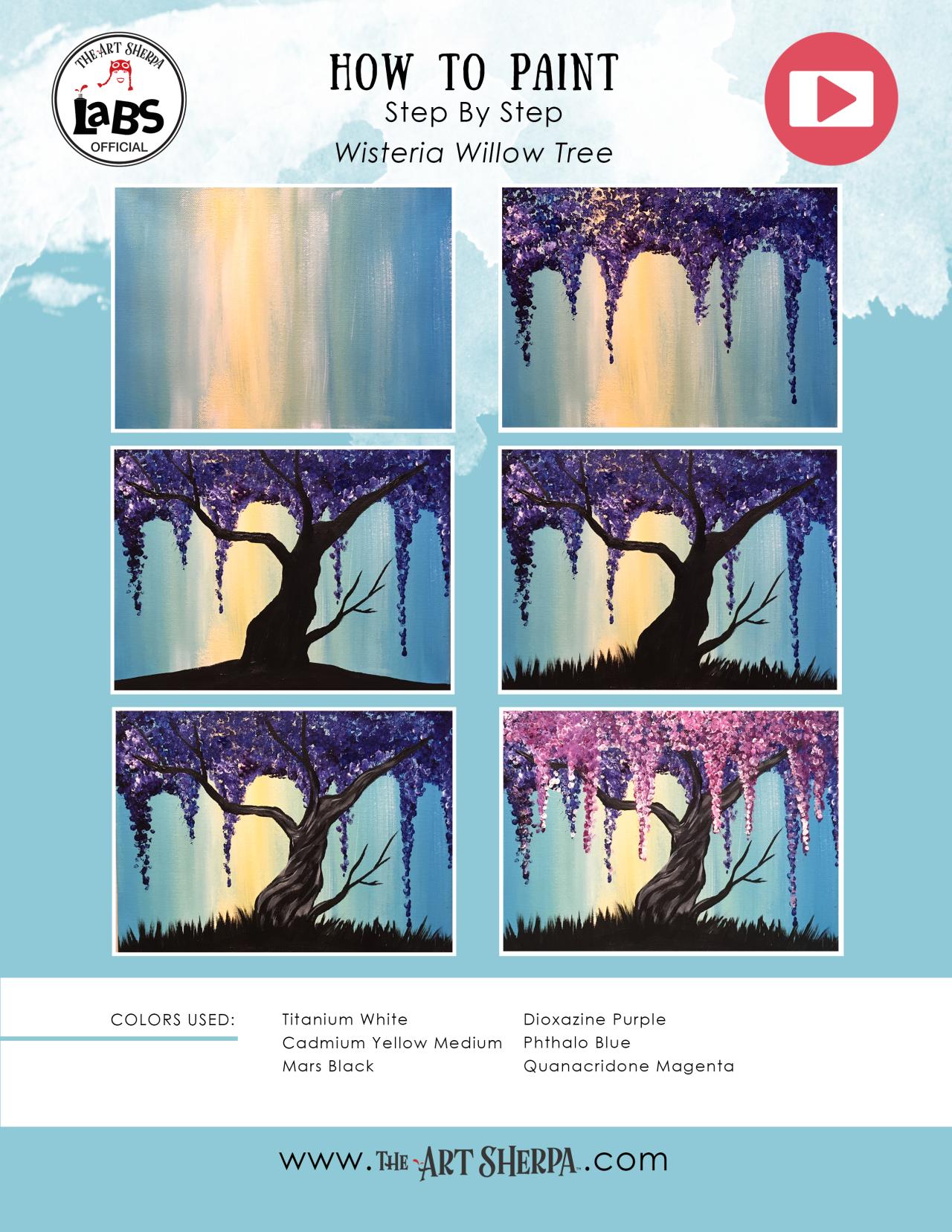 Simple Wisteria Tree with Cotton swabs in Acrylic Paint on Canvas Step by step tutorial. Anyone can do this really easily. For the Traceable and Webpage ~ https://theartsherpa.com/tas170407.01 Inspired by my friend Angela Anderson who uses all kinds of fun things to paint with like Q-tips and Credit cards. CHECK HER OUT. for watercolor CHECK OUT Jay Lee And also Pinterest ! Below are a list of materials. The links go through our Amazon Affiliate program, and you support The Art Sherpa when using them. These are link to make thing easy and convenient. *** Acrylic Paint Colors ***