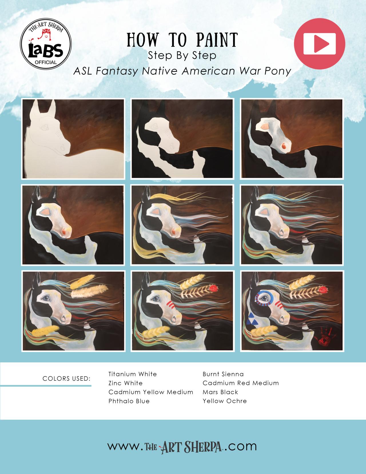 Inspired by the great painted War ponies of the west this wild spirit stares off into a distant future. Create this wild spirit in acrylic step by step easy painted war horse. Beginner fantasy native american war horse art is easy and fun to creative.