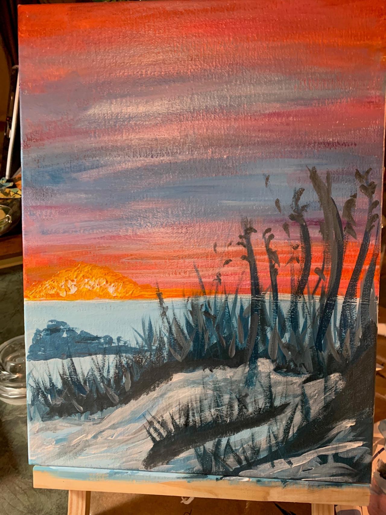 Beginners learn to paint full acrylic art lesson Dawn and snow over a field. This is a Great winter landscape you can so today fully guided step by step with The Art Sherpa