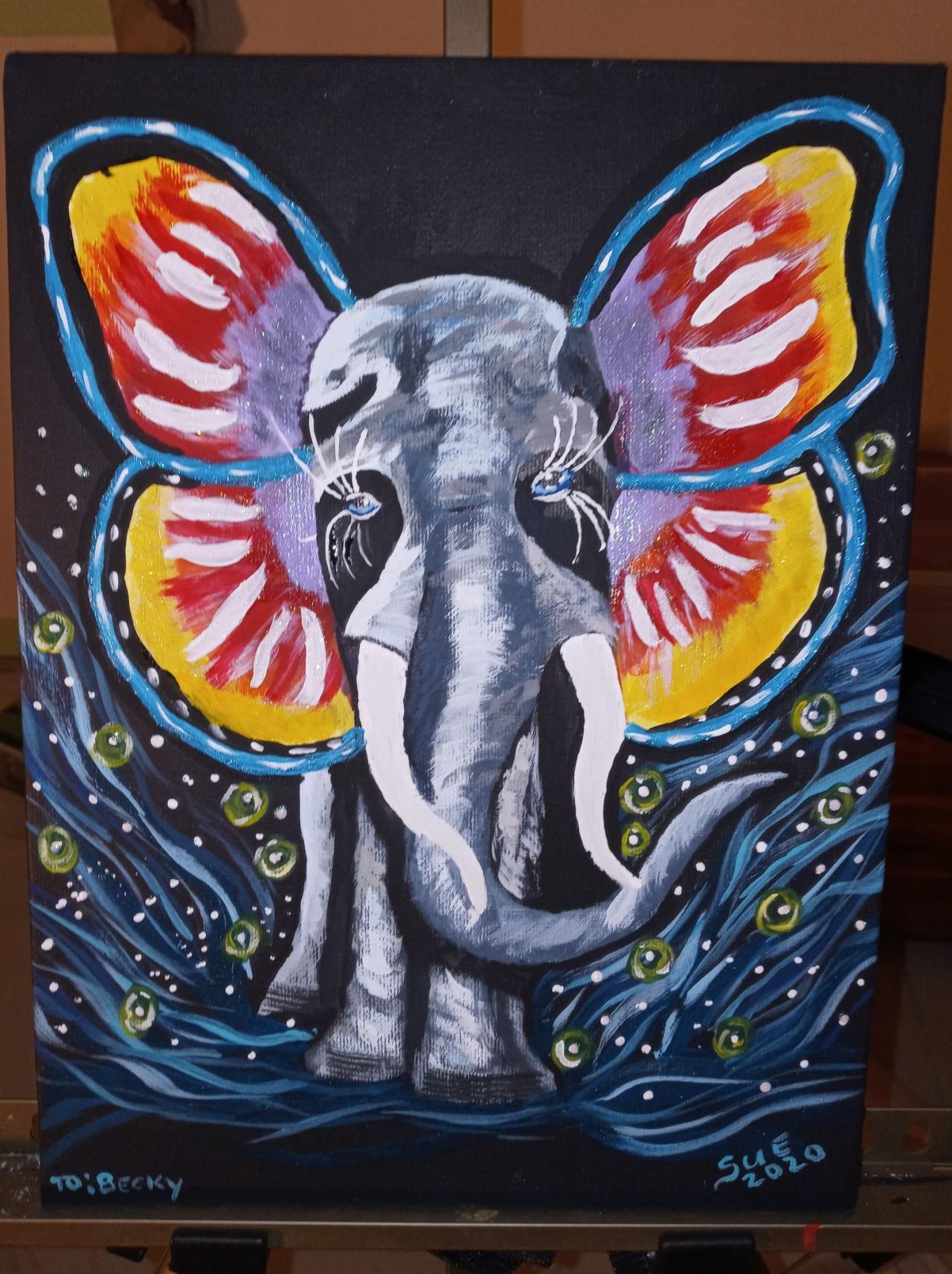 Only my 2nd painting.I'm pretty proud of it.Made her for my friend who just lost her mom and she loves it. Hope it comforted her somehow,she loves elephants.