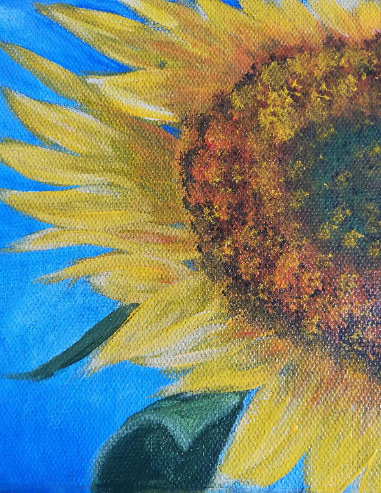Beginner sunflower Acrylic on canvas Step by step daily Live streaming painting from word prompt: The glow
