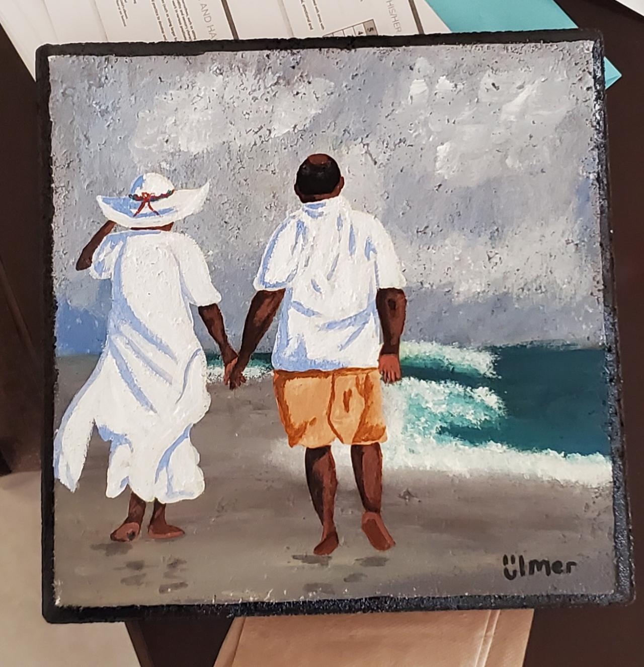 African American couple Stroll the beach in love Acrylic on canvas beginners Step by step daily Live streaming painting
