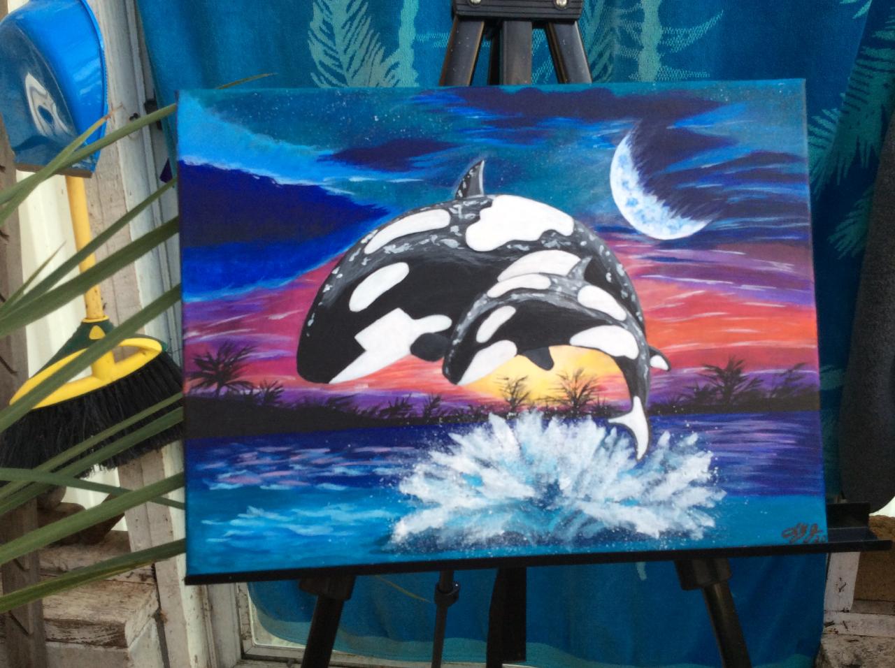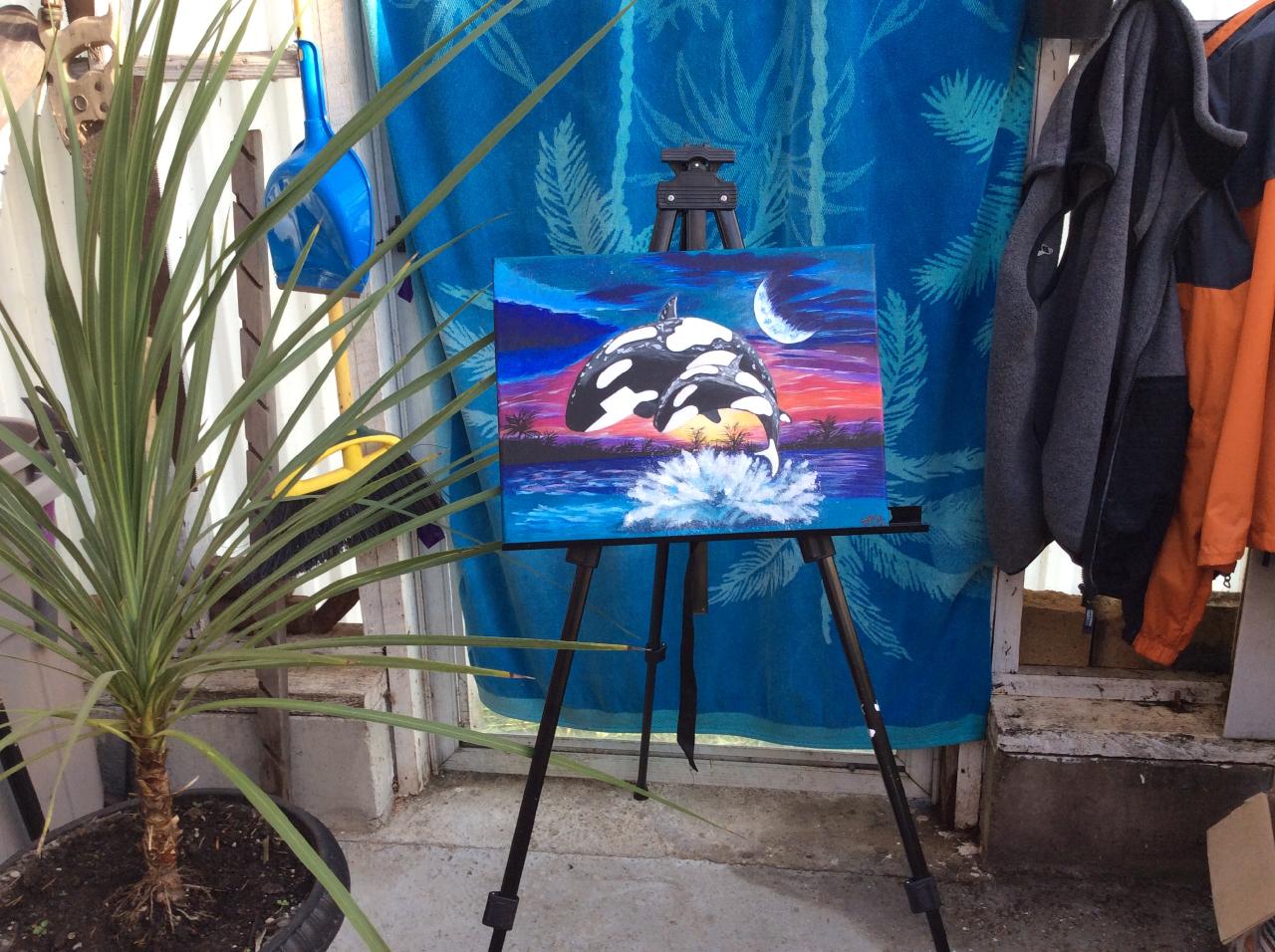 I finally finished my orca painting and I love it! It was definitely a challenge for me, but I glad I tried it. My husband actually picked it out for me to paint. I will attach my version of the whales. I think I need to buy a galaxy brush because I had a hard time with the splash.