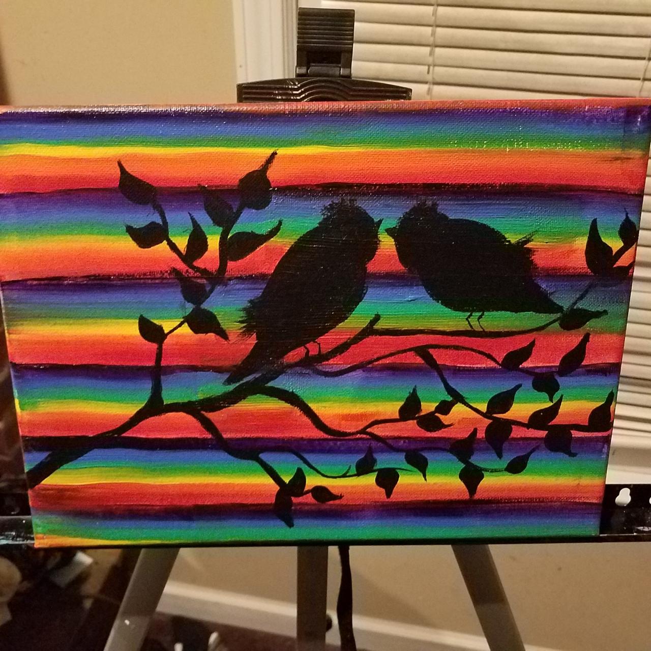 Easy Two Love Birds Silhouette on a Branch Acrylic Painting With 6 Rainbow colors Brushstroke Technique. This is a Fun Beginner tutorial YOU CAN PAINT.