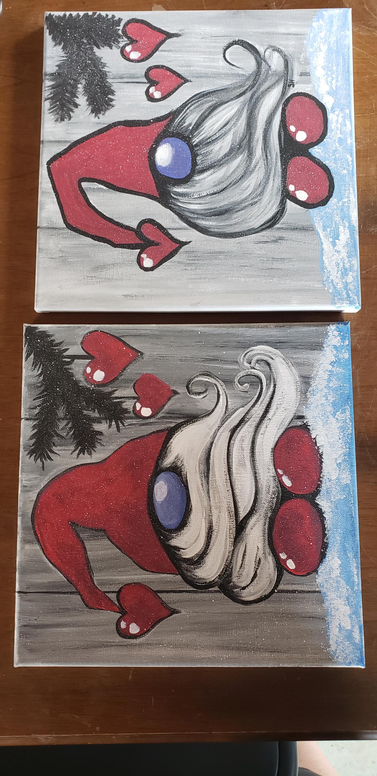 The traceables are so handy! My 9 year old and I painted this one together. It was so much fun and not too difficult, the beard was the most challenging part. Gnome 1 painted by adult, Gnome 2 painted by 9 year old.
